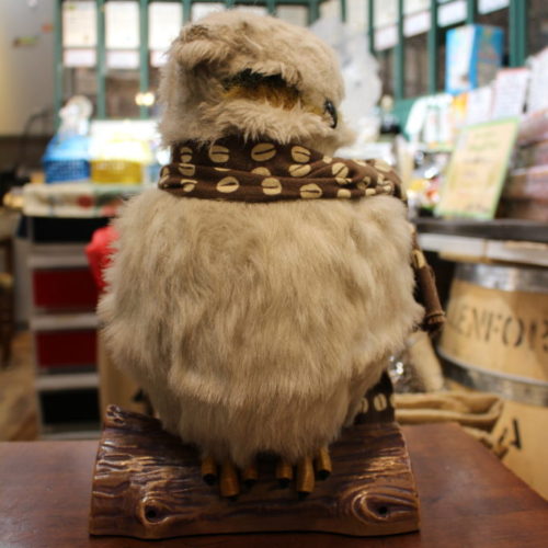 お店の人気者です。かれこれ15年位になるのでしょうか、いつも店頭で鳴いております。 お店のマスコット!?のふくろうです。 雨の日は店内にいることもありますが、いつも外でお出迎えしております。 お店のお知らせを首に...